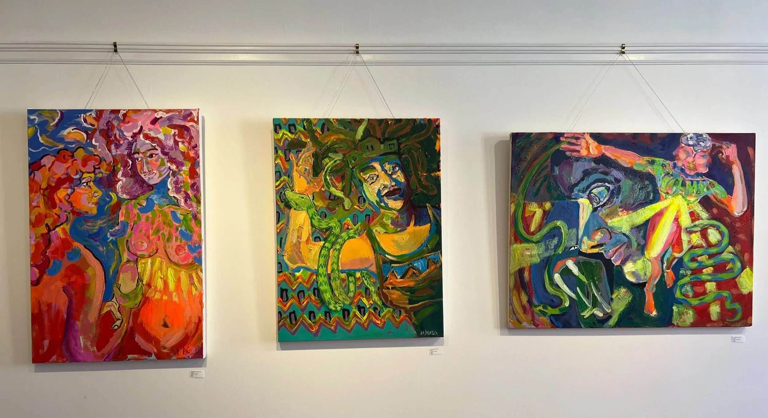 As important as internal growth is, the pursuit of knowledge is becoming a controversial idea, often followed by a growing concern about the ability to access knowledge in a world growing painfully conservative. As a woman in America, seeing libraries and facts brought into questions, reminds one of the pursuit of knowledge in the biblical sense. The patriarchy is evident. How women have been highlighted and punished for pursuing curiosity, pursuing a deeper knowing and being barred from that pursuit. Snakes reference, knowledge, duality, transformation, wellness, health, healing and change. The Rod of Asclepius, a staff with one snake, the symbol of medicine in Greek mythology, snakes are hairbringers of healing, shedding their skin to reveal growth. When confronted with a snake we confront our fear and grow from that or we shrink away. My interest in snakes stems from an interest in knowledge, the apple, and the idea of original sin combined with ideas of living without shame in the Garden of Eden. It is my mission as artist, coach, storyteller, truth teller and visionary to bring knowledge and rebellion to the forefront.
